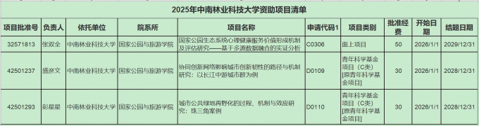 张双全副教授申请的《国家公园生态系统心理健康服务价值形成机制及评估研究——基于多源数据融合的实证分析》项目获得国家自然科学基金面上项目基金资助!该项目在国家公园生态系统服务价值日益重要和大众对心理健康日益重视的背景下,针对“国家公园生态系统心理健康服务价值形成机制不清和亟待量化”这一客观问题,旨在揭示国家公园生态系统心理健康服务价值的形成机制,开发和应用量化工具和模型来评估国家公园提供的心理健康服务的价值,实现国家公园生态系统心理健康服务价值的量化评估。该项目立项实施可为包括南山国家公园在内的国家公园心理健康服务纳入生态补偿核算和绿色GDP统计提供方法论基础。