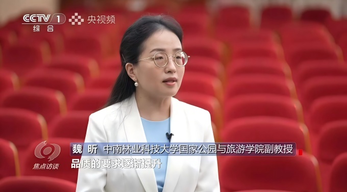 2025年7月4日,中央广播电视总台(CCTV-1)《焦点访谈》栏目播出了《职业上新 发展向新》专题节目,我校国家公园与旅游学院旅游管理系主任魏昕副教授接受访谈。该期节目聚焦人力资源社会保障部2025年5月公示的17个新职业及包括“旅拍定制师”在内的42个新工种,探讨了在此背景下旅游目的地如何精准把握文旅发展新机遇、拓展文旅业态与产品供给。节目同时展示了湖南文旅市场通过“场景赋能”丰富旅游体验、激发消费活力的实践成果。