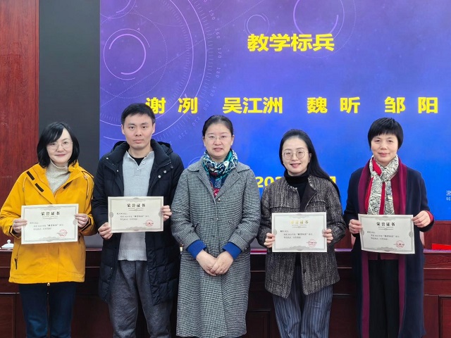 学院积极推树先进典型,大力弘扬师德师风,充分发挥榜样示范引领作用,评选出“科研标兵”“教学标兵”“就业工作先进个人”“优秀班主任”共14位先进个人。会上,学院领导为获奖同志颁奖。