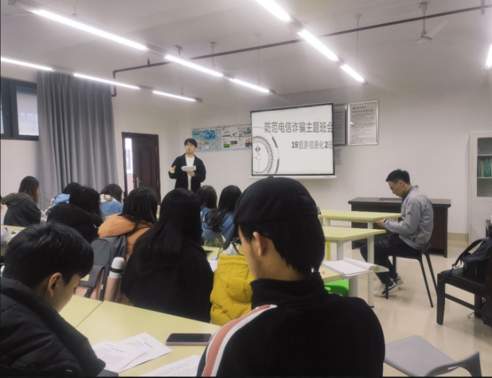 近段时间,电信诈骗案件频发,为加强同学们防范电信诈骗的意识和能力,除前期通过班团干部例会、班级QQ群等途径进行宣传教育外,2021年4月13日至14日,我院2019级8个班级陆续召开了以“防范电信诈骗”为主题的安全教育班会,2019级全体同学参与此次活动,并邀请各班班主任参加。