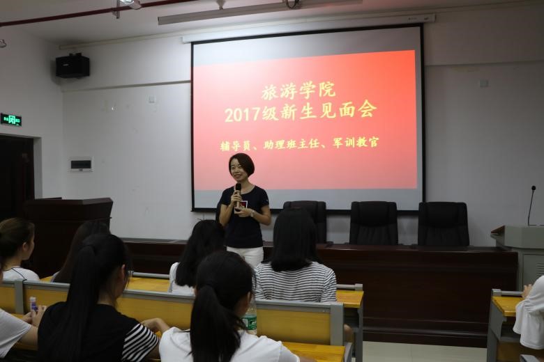 9月8日晚,旅游学院2017级新生见面会在文综楼南905举行。2017级辅导员范艳霞老师主持了本次见面会,参加本次见面会的有旅游学院2017级各班助理班主任和军训教官。