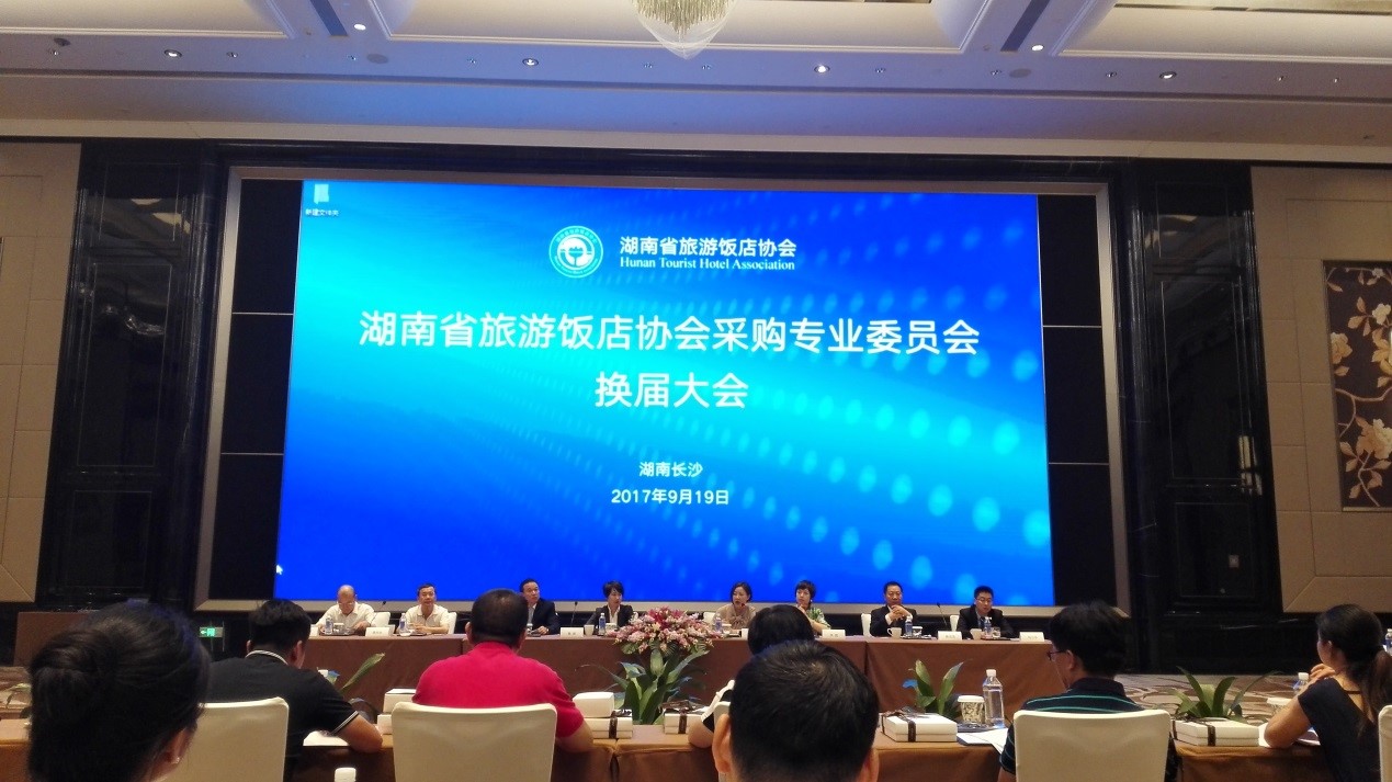 2017年9月19日,我院熊丽娟老师应邀参加湖南省旅游饭店协会采购专业委员会换届大会,会议在长沙瑞吉酒店举行,由旅游饭店协会秘书长陈伏姣主持。