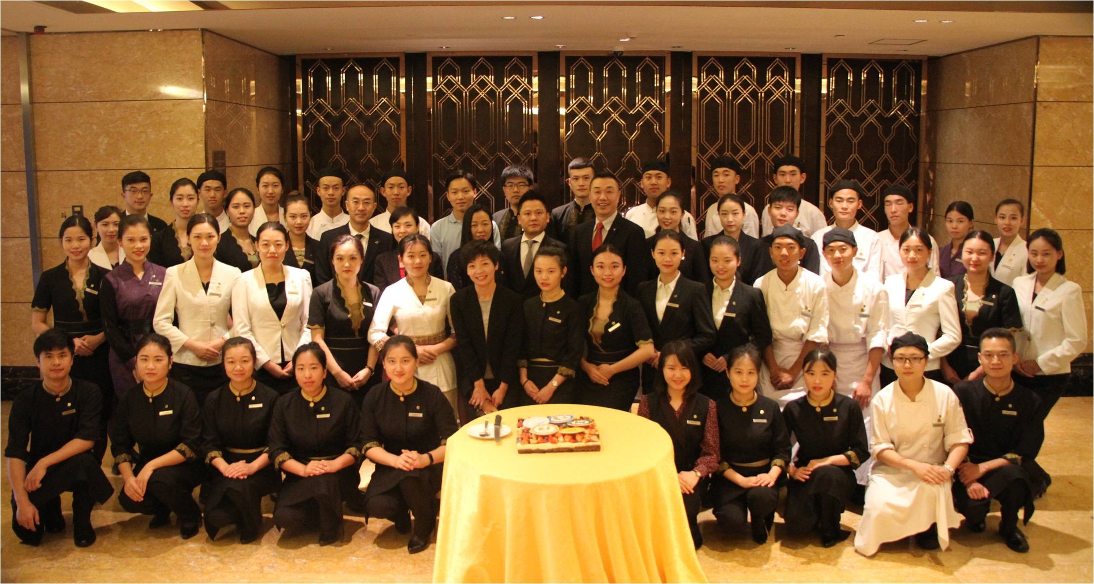 丽思卡尔顿目前是万豪国际酒店集团旗下“Classic”部门最知名的奢华酒店品牌,毫无疑问,作为全球首屈一指的奢华品牌,星河丽思卡尔顿酒店是深圳众多豪华酒店中极为璀璨夺目的一颗。7月10日,同学们怀着无比高兴的心情来到了深圳星河丽思卡尔顿酒店,而酒店也以最大的热情和最高的规格迎接同学们的到来,从各部门总监到总经理的酒店行政委员会所有成员在宴会厅汇聚一堂,与同学们分享了各自的职业成长旅程。人力资源部陈竹君经理给同学们展示了丽思卡尔顿品牌在不久的将来的全球发展计划,陈经理鼓励大家从实习开始就树立职业生涯的第一个目标。紧接着交流会后,同学们开始了系统完善的入职培训,培训内容十分丰富,既有丽思卡尔顿品牌著名的黄金标准和服务信条,也有各部门和岗位的服务流程及规范要求。同学们都表示对接下来六个月的实习生活充满期待。