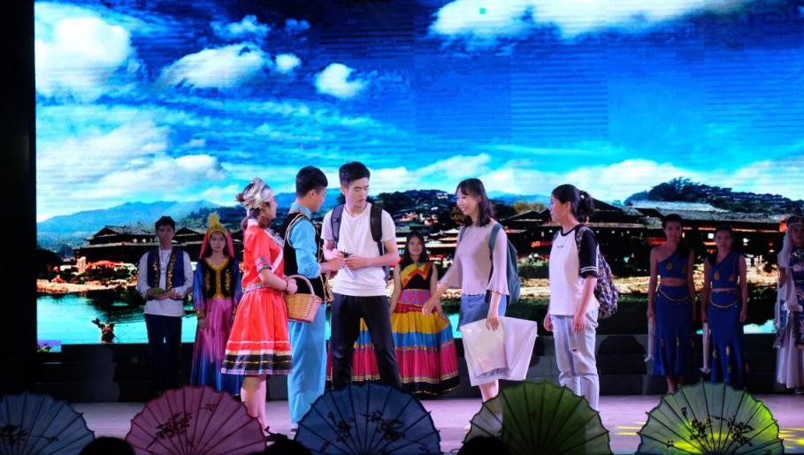 激情四射的开场舞后,由旅游学院院长钟永德教授致开幕词,主持人宣布晚会正式开始。晚会上,有倡导文明旅游的相声《文明人》、给人以无限回味的歌曲《夜空中最亮的星》、极具民族特色的舞蹈《孔雀飞来》。欢快热情的教职工舞蹈节目《七月火把节》,体现浓浓师生情;小品《王家界的故事》以幽默的方式演绎旅游中的黑店欺客现象,提醒大家要提高防骗意识;《可念不可说》则通过传统与现代相结合演绎出同一段旋律;歌曲串烧则带动起全场气氛;高端大气的T台秀更是让观众们大饱眼福。旅院学子们参赛获奖的优秀作品展示也博得了满堂彩。压轴登场的团学节目《你曾是少年》不仅引起观众们的共鸣,更将晚会气氛推向高潮。