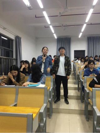 活动的第一个环节是观看微电影,心理部播放了三部微电影,分别是《女生日记》《田埂上的梦》及我们学院自己拍摄的《其实我不坏》。第二个环节是有奖竞答环节,主持人随机抽取五名同学,回答与心理有关的问题,通过这样一种方式,使同学们更加了解自身心理健康问题。第三个环节是未来寄语环节,主持人给每位同学发一张信纸,让她们写下自己对一年后的自己的希望和要求,由心理部保管,一年后发下去。