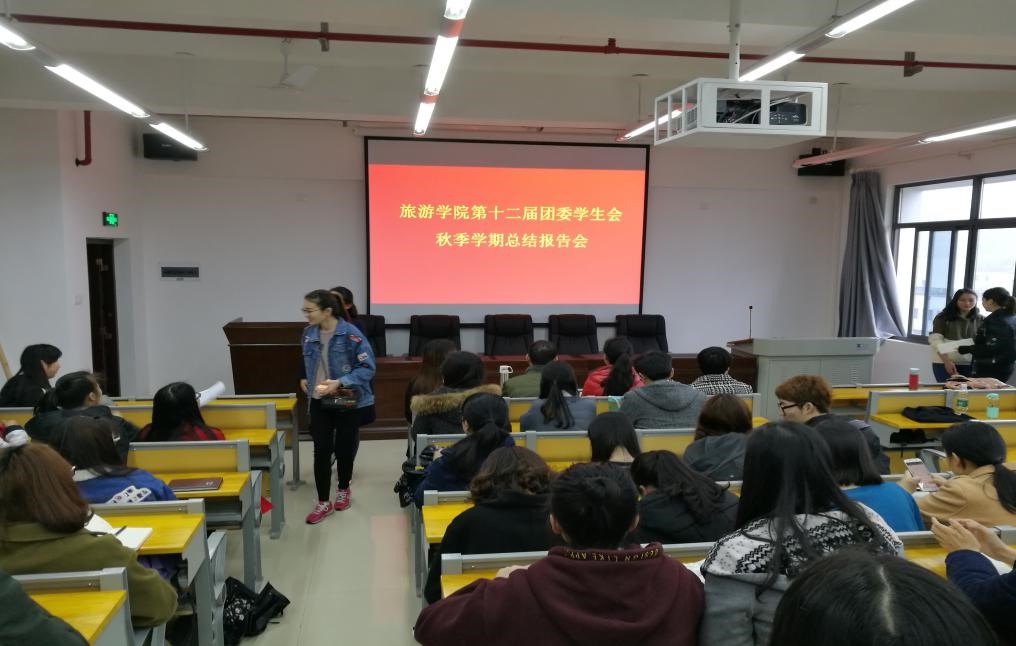 3月13日中午,旅游学院第十二届团委学生会秋季学期总结报告大会在文综楼南905教室召开。旅游学院党委副书记洪梅、团委书记曾浩以及团委学生会全体成员参加了本次大会。