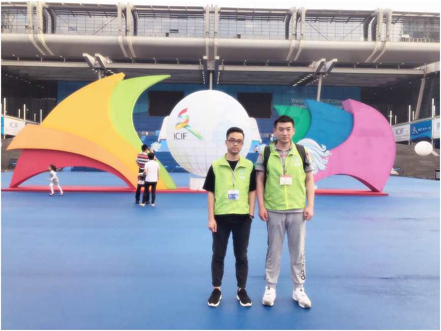 (图为沙子凯同学和刘百顺同学在文博会馆口合影)