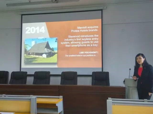 宣讲会开始,主讲人首先对深圳瑞吉酒店以及喜达屋集团品牌进行介绍。