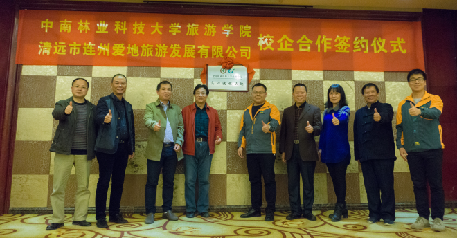 3月3日,旅游学院与清远市连州爱地旅游发展有限公司在连州大酒店举行产学研合作签约仪式,旅游学院党委书记胡建刚、副院长戴美琪、旅游教研室主任吴江洲、副主任张清、教师林梓、连州爱地旅游发展有限公司副总经理何东强、总经理助理李群、营销总监邓谦,以及连州市人民政府办公室、组织部、人社局、旅游局等相关部门领导出席了签约仪式。仪式由连州爱地旅游发展有限公司人事部副经理翟丽灵主持。