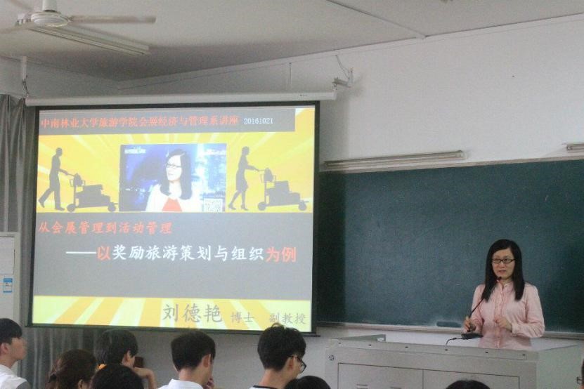 10月20日下午,上海师范大学旅游学院会展经济与管理专业方向负责人刘德艳博士莅临我院,在国际楼407教室为我院会展专业师生做了一场题为“从会展管理到活动管理——以奖励旅游策划与组织为例”的专题讲座。
