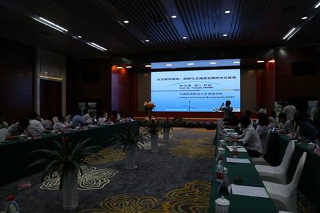 中南林业科技大学旅游学院院长钟永德教授在研讨会上作《从百越到客瑶:南岭生态旅游的文化脉络》的主题演讲,钟教授强调了南岭的重要地理、生态和文化地位。分析了从尧舜时期到如今南岭地区的民族与民系迁徙定居的文化脉络,得出其东部为全国最大的客家民系聚集区,东部为全国最大的瑶族聚集区的结论,提出南岭生态旅游发展的重要文化依托即瑶族文化和客家文化。