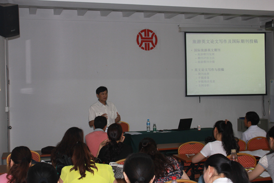 学术交流期间,邓金阳教授为旅游学院的师生开设了一系列学术讲座,包括青年教师的《国际旅游期刊与论文写作及投稿》,研究生的《地理信息系统在旅游与游憩中的应用》及《生态旅游者的自我识别》,本科生的《生态旅游市场营销》。在学术合作上,邓金阳教授与我校教师联合撰写《Measuring Tourists’ Carbon Footprint: A Case Study of Zhangjiajie, China》论文,已经投到《Journal of Sustainable Tourism》(SSCI, 全球旅游、休闲与游憩研究杂志中排名第四)并经过编辑部初审与专家匿名评审,现正在对该文进行修改。邓金阳教授联系我院的钟永德教授、罗芬博士合作参与编写《Best Practices in Recreation Resource Planning: A Resource Guide for Planners》(Ph.D Baas and Ph.D Burns主编)教材中中国游憩资源规划的演变与特征这一章节的编写,构建中国游憩资源规划实践与研究的对外窗口,促进国内外在此方面的交流。在国际交流方面,邓金阳教授为2012年“中国国家森林公园国际论坛”的主要成员之一,成功联系美国、加拿大、澳大利亚、英国等国家的国家公园管理局领导与研究者近10余人次参会。另外,在邓金阳教授的努力下,中南林业科技大学与美国西弗吉尼亚大学的校际合作关系取得新突破,2013年10月中南林业科技大学党委书记曾思齐教授将率访问团访问美国西弗吉尼亚大学,并签订两校国际合作协议。