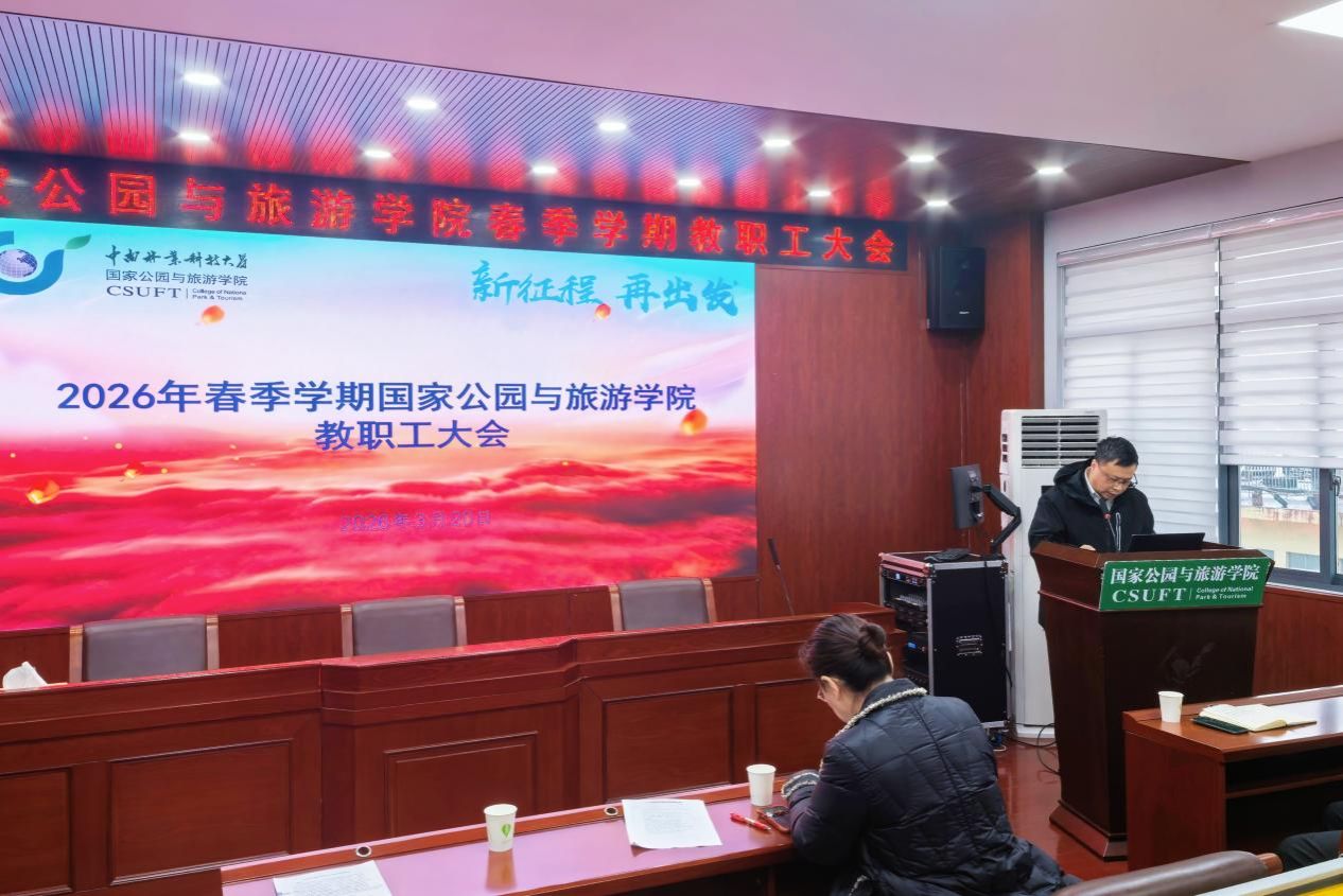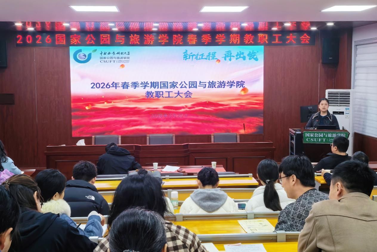 3月20日上午,国家公园与旅游学院于博文楼南905召开2026年春季学期全体教职工大会暨教职工政治理论学习会。学院党委书记洪梅主持会议,全体教职工参加会议。