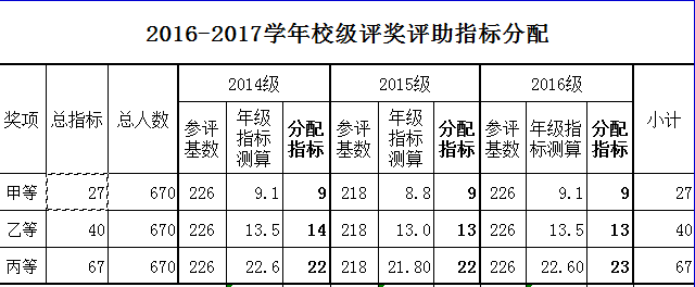 1、参评基数:2014226人,2015218人,2016226人,共计18个班级670人。