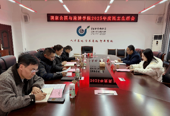 1月27日,国家公园与旅游学院党委召开2025年度民主生活会。学校党委宣传统战部常务副部长周预分、学工部思想政治教育科科长向修竹到会指导,学院党委书记洪梅主持会议,党委班子成员参会。