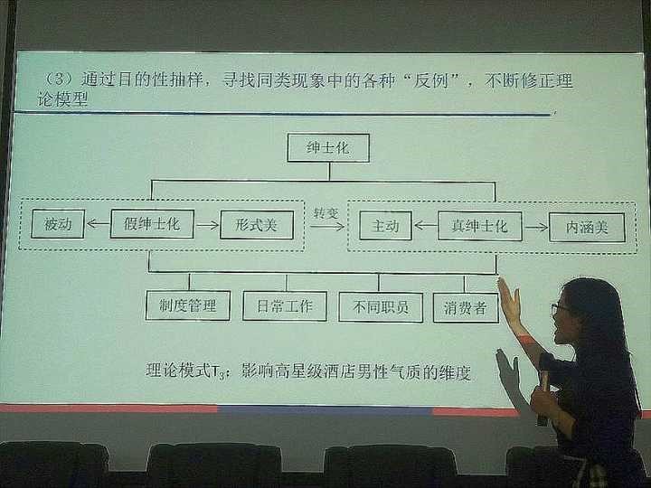 蔡老师的讲座,从跨学科的思考开始,旅游休闲管理是一门诸多自然科学与社会科学相交叉的新兴学科,将多学科知识与旅游休闲相结合研究必不可少。讲座内容包含三个方面:一、理解文化政治;二、基于酒店空间的实证研究;三、研究数据、逻辑、方法反思。蔡老师分别从学术流派与社会现实的角度介绍文化政治产生的背景,用简单易懂的案例,介绍了什么是文化政治,以及研究文化政治的本质是研究所在场域的矛盾。同时,给大家介绍了自己所做的两个有关酒店文化政治的研究案例,用生动有趣的故事,讲述了研究的缘起其实更多的来自生活和兴趣。蔡老师把整个研究过程如何一步步开展进行了详细生动的讲述,从如何提出研究问题,研究理论的准备与对话,研究调查的开展,研究模型的一步步修正,到得出研究结论。
