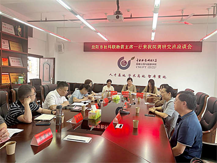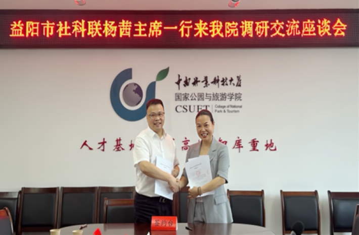 2024年6月28日,中南林业科技大学国家公园与旅游学院举行2024年益阳市重大新型智库课题“清溪村如何打造成新时代山乡巨变的典范”交流会。湖南省政协常委、益阳市社科联主席杨茜,益阳市社科联党组成员、副主席陈石刚,益阳市社科联科普部郭淇文主任出席会议,课题组组长罗芬教授代表课题项目组做课题研究情况汇报,交流会由学院副院长徐美主持。