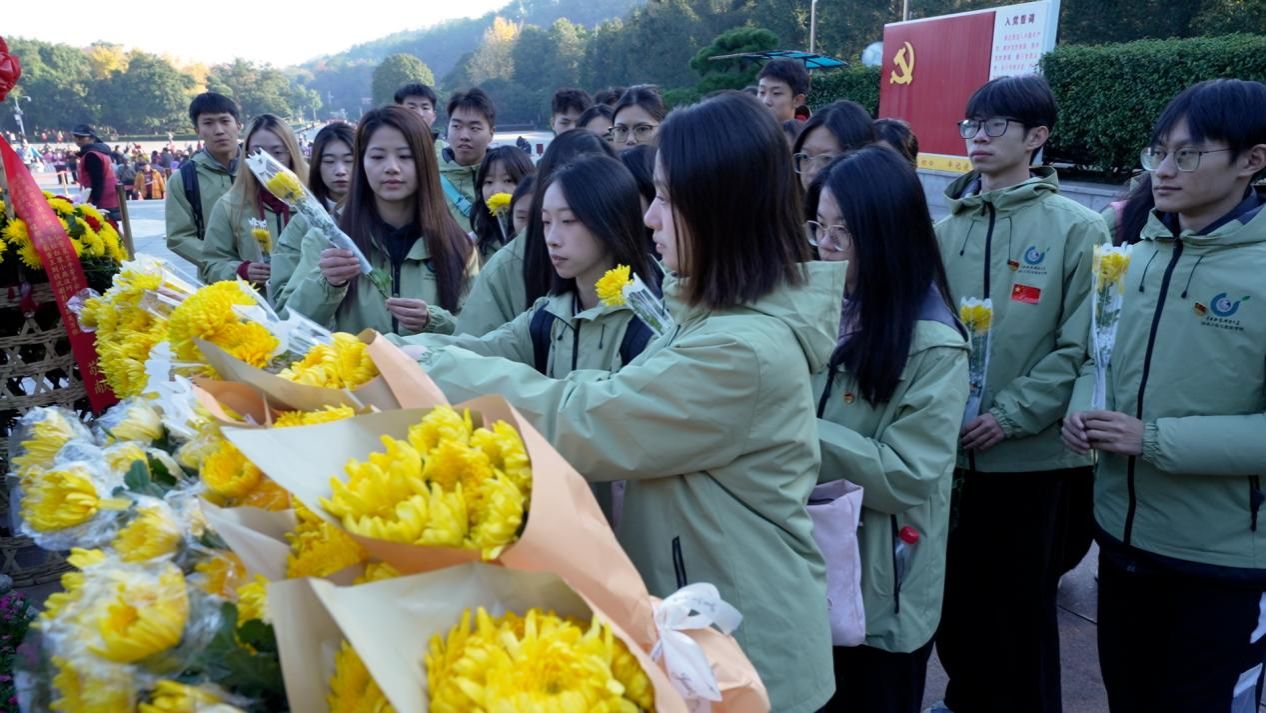 走进庄严肃穆的毛泽东同志铜像广场,阳光洒在熠熠生辉的铜像上,全体人员列队肃立。大家手持菊花,依次缓步上前,将鲜花轻轻摆放在铜像基座前,随后集体深深三鞠躬,以最质朴的方式向伟大领袖致以最崇高的敬意。