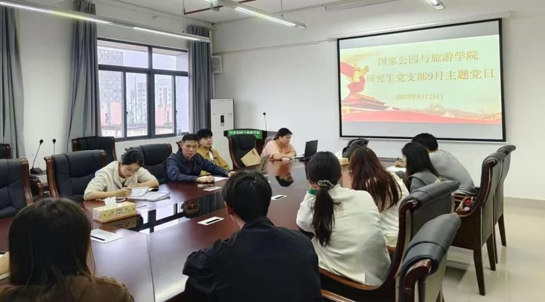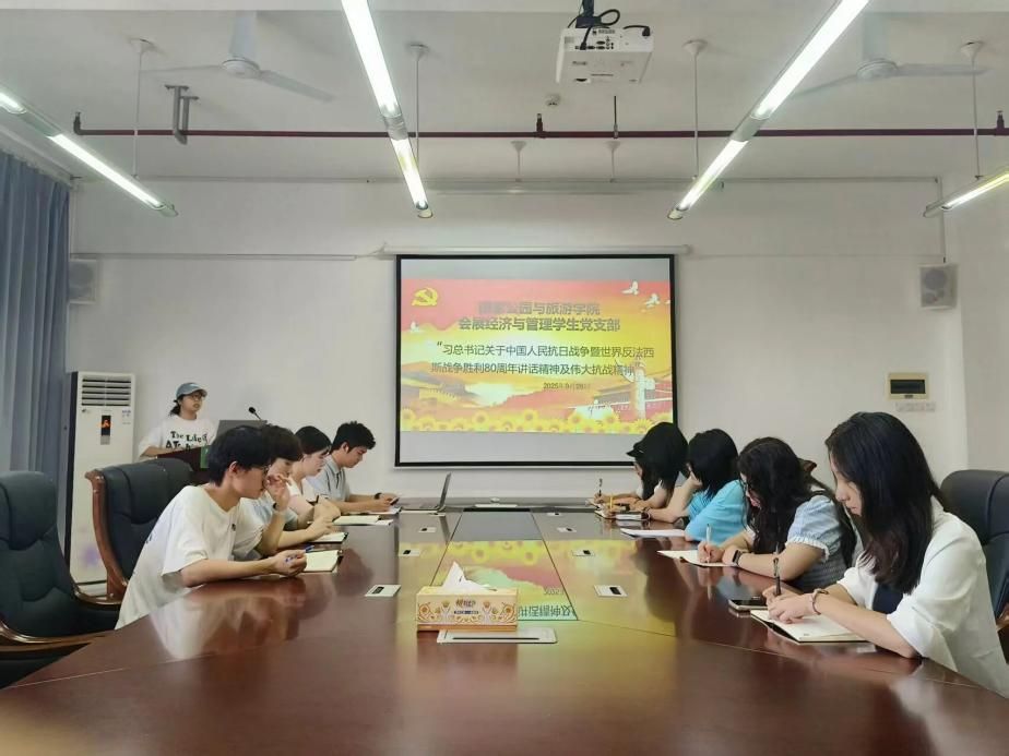 为深入学习贯彻习近平总书记重要讲话精神,弘扬伟大抗战精神,2025年9月25日,国家公园与旅游学院研究生党支部于博文楼南1002组织开展了“铭记抗战历史,赓续红色血脉”主题党日学习。此次会议由曾浩同志主持,支部全体党员参会。