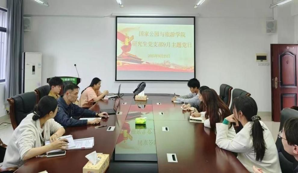 2025年9月28日下午4:00,国家公园与旅游学院会展经济与管理学生党支部在博文楼南1002开展了九月主题党日学习。此次会议由支部书记曾桃江同志主持,支部全体党员参加。