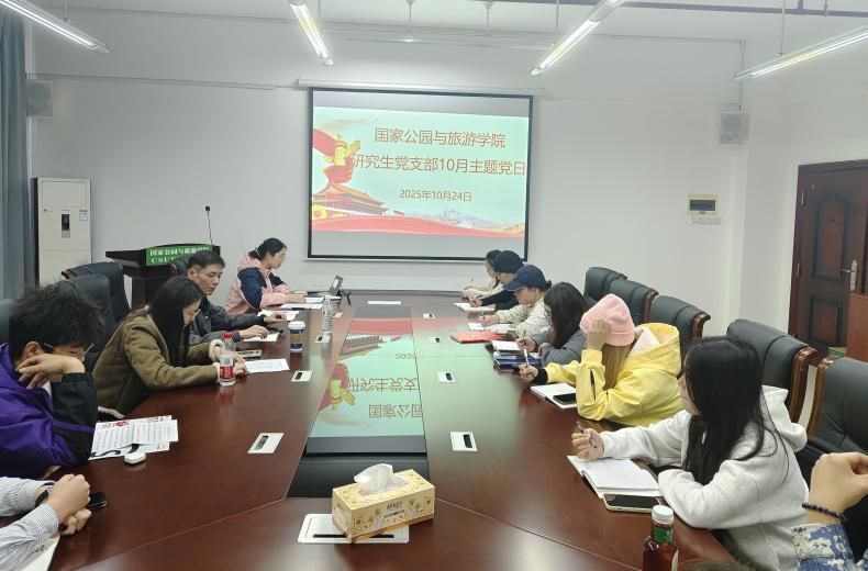2025年10月27日上午9:00,国家公园与旅游学院会展经济与管理学生党支部在博文楼南1002开展了十月主题党日学习。此次会议由支部书记曾桃江同志主持,支部全体党员参加。