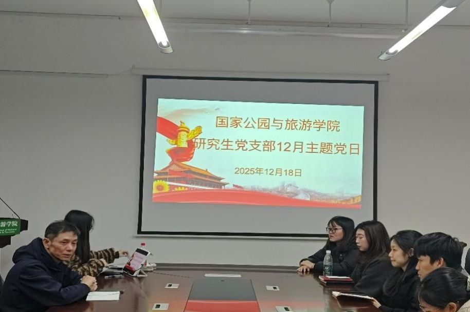 2025年12月25日下午2:00,国家公园与旅游学院会展经济与管理学生党支部在博文楼南1002室开展了十二月主题党日学习暨党支部书记述职。此次会议由支部书记曾桃江同志主持,支部全体党员参与。