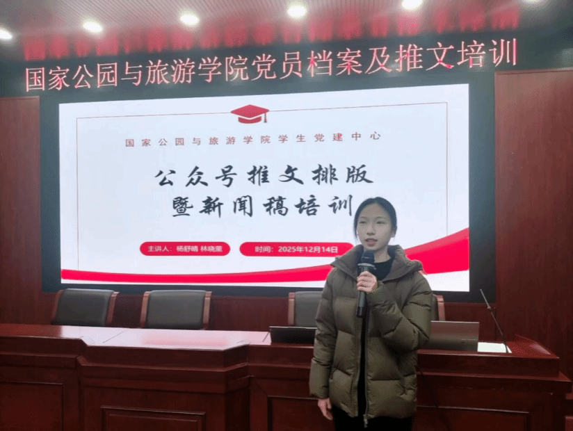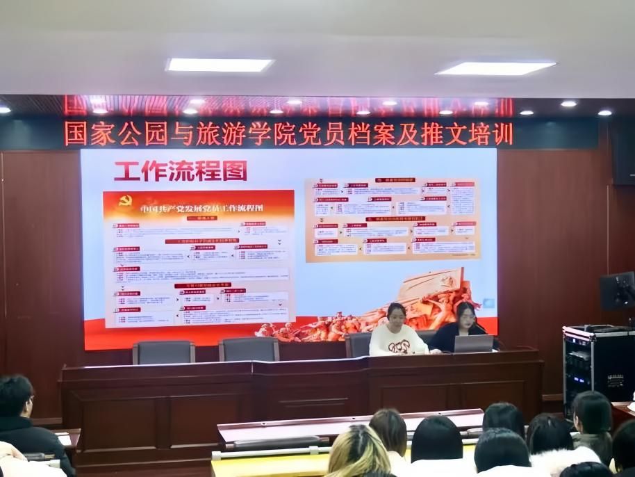 为进一步强化学院学生党建中心成员业务能力,提升学院学生党建工作质量水平,国家公园与旅游学院党建中心于12月14日晚19:00在博文楼南905顺利开展党员档案及推文培训。此次主讲人为学生党建中心档案部副部长李咪咪、郑婉仪,宣传部副部长林晓薰、杨舒晴,学生党建中心全体成员参与。