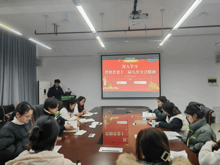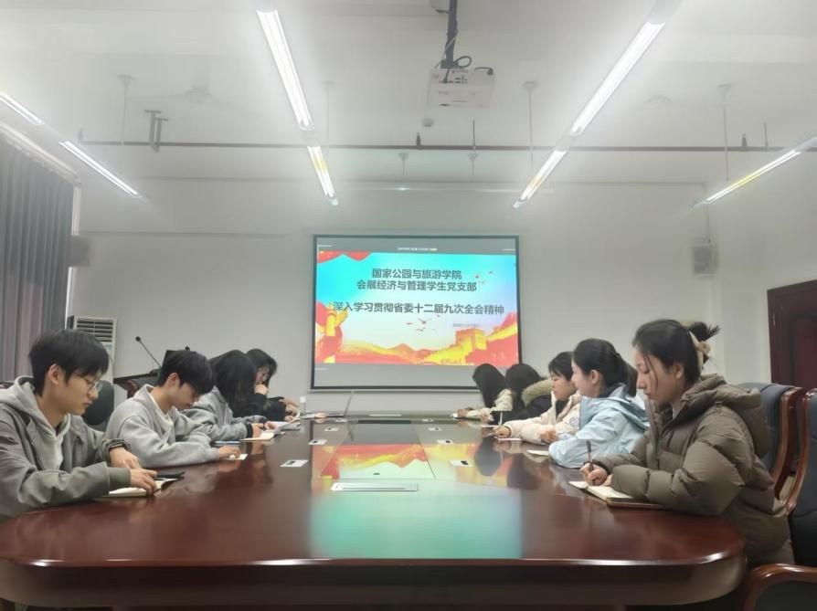 深入学习省委十二届九次全会精神,同步结合学习党的二十届四中全会精神及习近平总书记关于湖南工作的重要讲话和重要指示精神。 12月 29日 ,智慧旅游学生党支部 在博文楼南1002教室组织全体党员开展十二月主题党日活动,活动由王俊同志主持,支部全体党员参与。