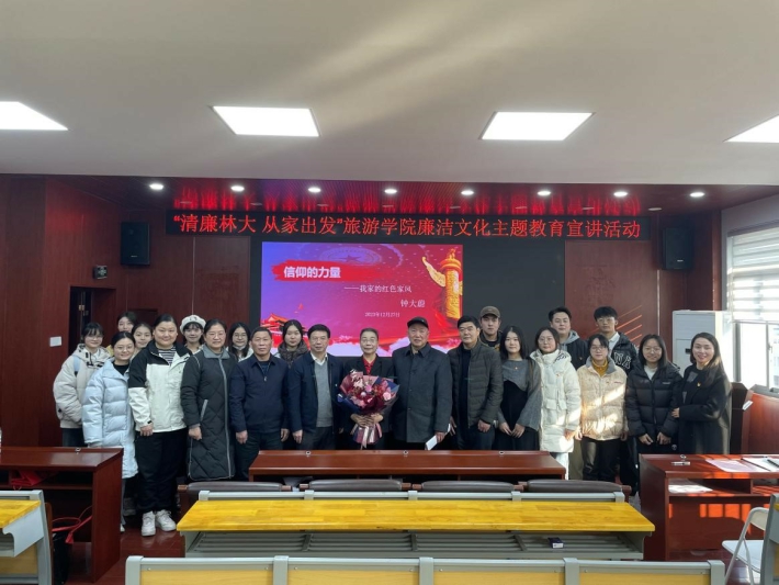 为深入推进廉洁文化建设,引导广大干部师生廉洁修身、廉洁从教、廉洁从政,切实提升广大师生崇廉尚廉、遵纪守法、诚实守信的理想信念,大力营造廉洁文化浓厚氛围,12月27日下午,旅游学院党委在博文楼南905组织“清廉林大 从家出发”廉洁文化主题宣讲活动。