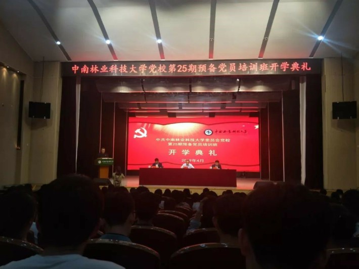 2019年4月19日晚7点,中共中南林业科技大学委员会党校第25期预备党员培训班开班典礼于雅韵堂正式开始,旅游学院学员参加典礼。