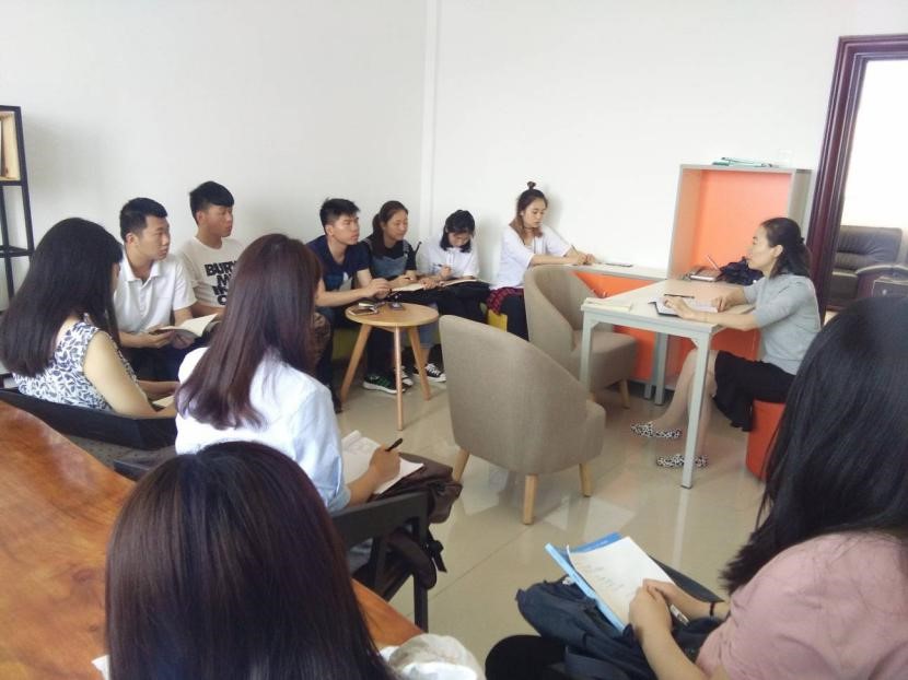 2017年5月10日12点,旅游学院2015级辅导员范艳霞老师与2015级确定的12名发展对象候选人在文综楼北1101进行了集体谈话。