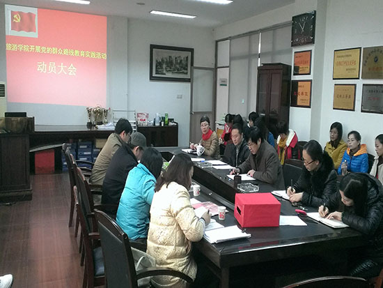 3月14日下午,旅游学院在学院多功能室召开党的群众路线教育实践活动动员大会,对全院教育实践活动进行动员部署。动员大会由院长钟永德主持,党委书记周志宏作动员报告,学院全体教工党员和学生党员代表参加了动员大会。学校教育实践活动第三督导组全体成员出席了大会,组长韩健教授作了指导讲话。