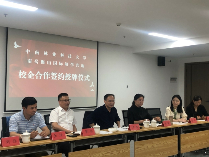 尹健副校长介绍了学校的办学特色、专业建设及人才培养等情况,并感谢企业对学校人才培养工作的大力支持。他表示,开展“访企拓岗促就业”专项行动,是深化产教融合、校企合作,拓宽毕业生就业渠道的具体体现,学校将以为契机,进一步加强校企供需对接、深度融合,建立常态化互动渠道,提高人才培养与企业需求的契合度。他提出,衡山自然资源丰富,可与我校林学、生态学、环境学、旅游学和材料学等优势学科形成共促高质量发展的合力,同时应利用好学生资源,共同助推企业构建人才智力支撑体系。随后,校企双方举行了《产学研合作协议》签订及授牌仪式。
