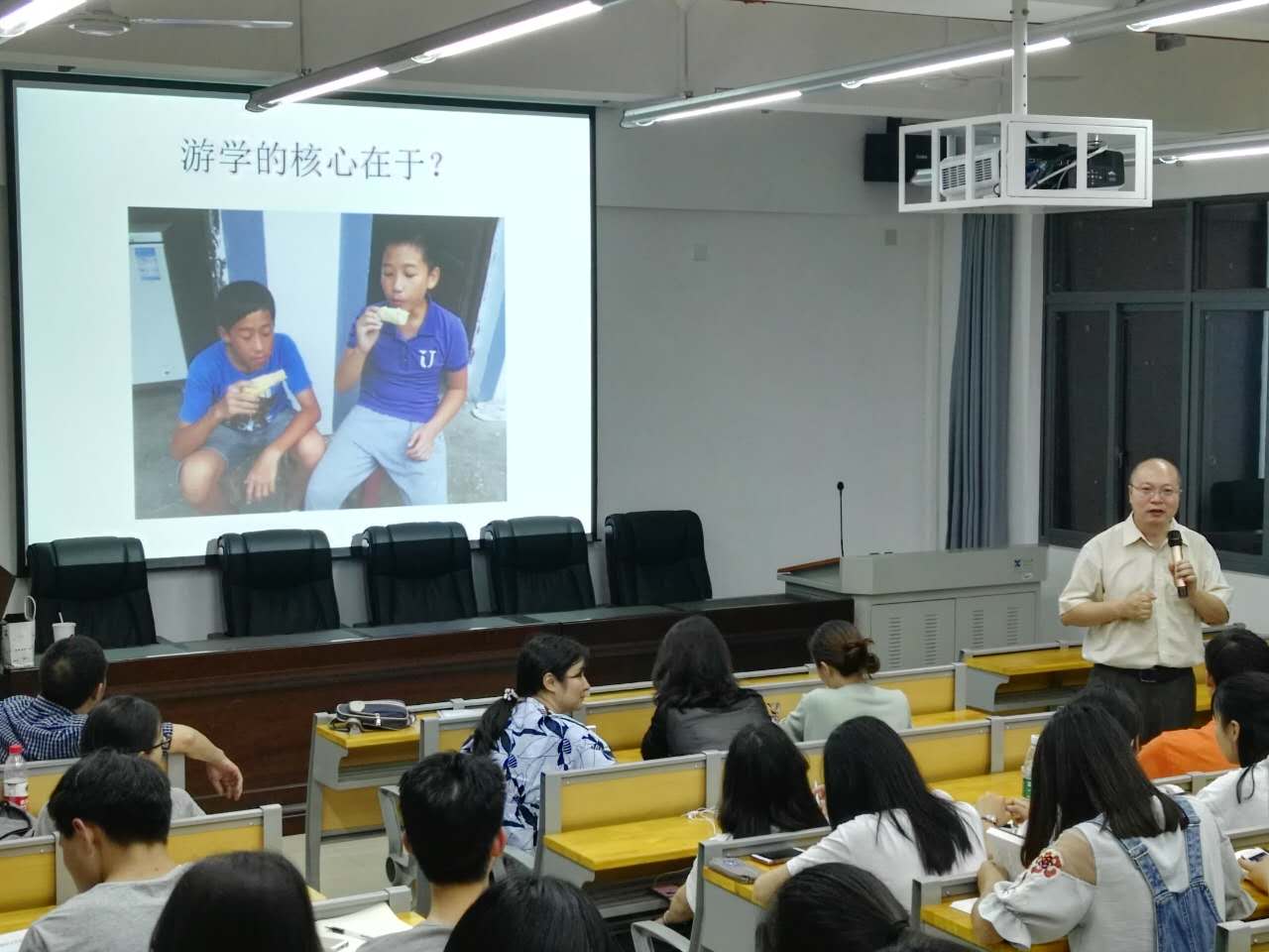 510日,应学院之邀,松爸在文科楼南905给全员学生做了个讲座。作为一个中登协会员,资深的驴友,网络名称松爸,辞职培养自己的女儿松松,现在已经是网络大V,广州青少年教育界的名人,经历颇有意思。