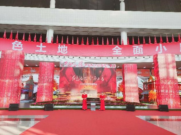 展厅大门处,红色大字彰显本次展览主题——“2020中国红色旅游博览会”。展厅内部,通过视频、图片、宣传手册、各式展品等方式,再现几十年前的历史。生活在物质丰足、幸福安康的二十一世纪的我们,也不能忘怀这段历史。