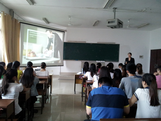 2013年5月29日,深圳君悦酒店人力资源部副经理Gigi Zhang来我院做宣讲招聘会,参加会议的有2011级酒店管理专业学生。讲座由实习就业办主任胥俊老师主持。
