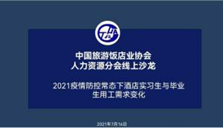 为开展《2021 疫情防控常态下酒店实习生与毕业生用工需求变化》的调研,2021年7月16日,中国旅游饭店业协会人力资源分会特邀行业及院校嘉宾,以“2021 疫情防控常态下酒店实习生与毕业生用工需求变化”为主题,召开线上沙龙。我院酒店管理系彭庆喆老师应邀参加本次会议并做主题发言。