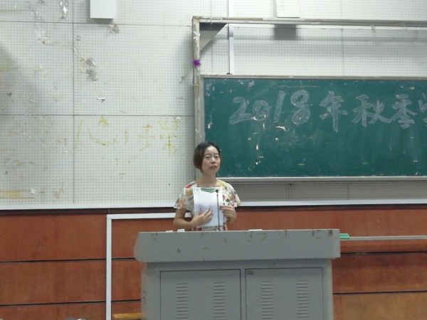 首先,2017级学生曾佩涵上台诵读钟院长写给2018级新生的信,范老师希望大家对信中所讲有所感悟,对专业、对过去一年的大学生活有所思考。随后,三位2017级学生代表先后上台分享自己的大一生活经历及感触,提到了做事认真、提高对自身的要求以及多参加实践活动的重要性。范老师也提醒大家不要固步自封,应当将一部分精力用于实践,并送给大家两句话:一、最怕你一生碌碌无为,还安慰自己平凡可贵,二、莫问前程,过好每一天。在新的学期,她希望同学们上好每堂课、提高个人素养、尽可能尝试各种与专业相关的实践活动,要建立在遵守校纪校规的基础上努力让大学时光不留遗憾。最后范艳霞老师对近期工作安排及相关注意事项进行详细说明,并提醒大家要保持良好的出勤率,平时注意礼貌礼节。