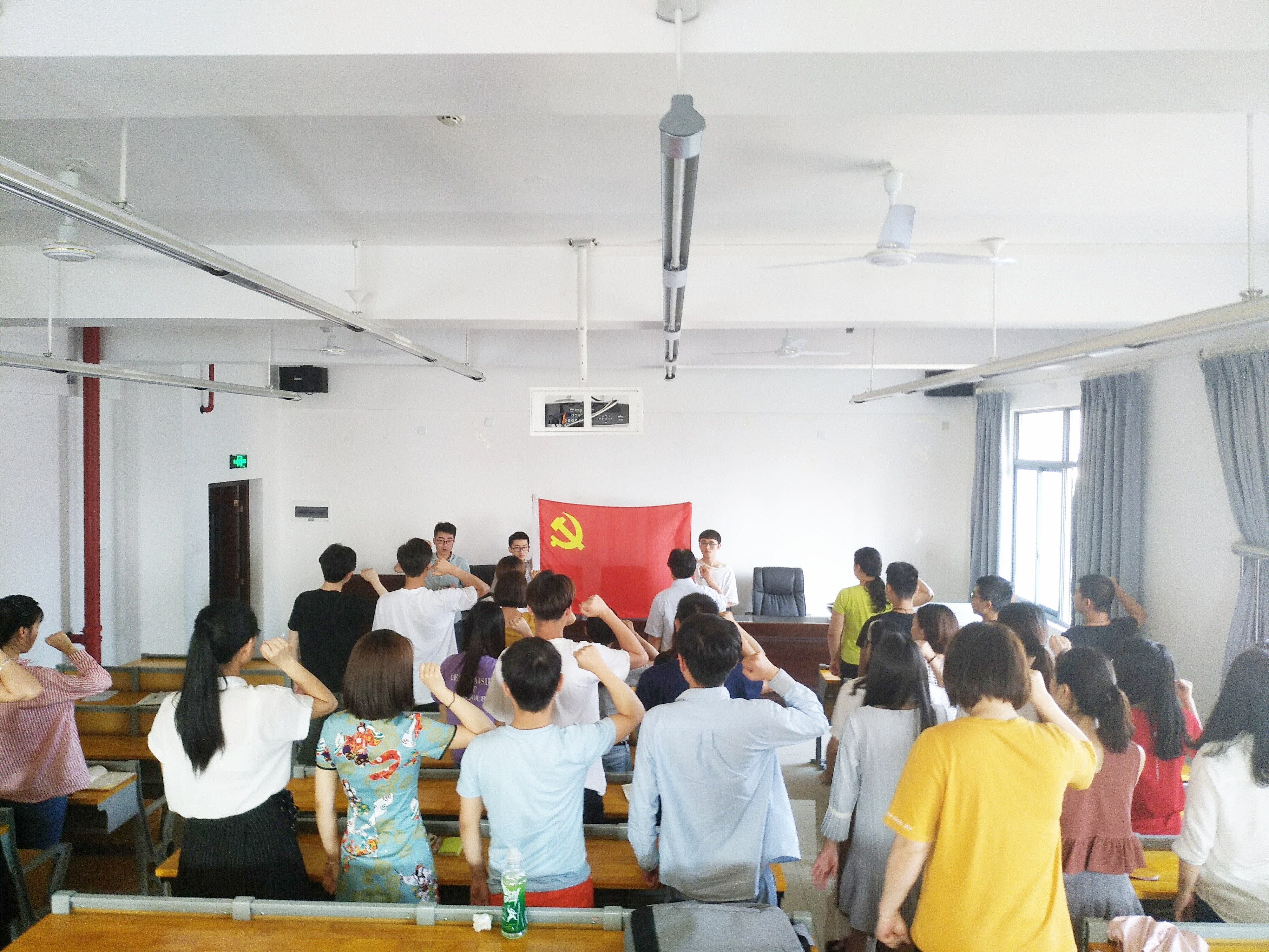 第三个部分为预备党员宣誓,正式党员重温入党誓词。大家在庄严的宣誓活动中,慷慨激昂,为自己作为一名党员而感到骄傲,同时,也感觉到作为一名党员的责任重大。