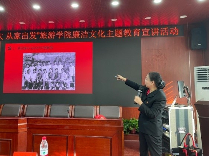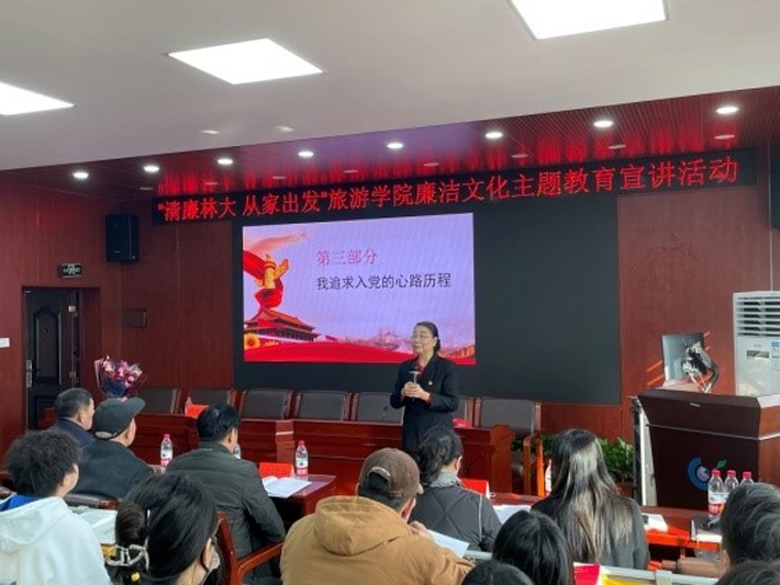 为深入推进廉洁文化建设,引导广大干部师生廉洁修身、廉洁从教、廉洁从政,切实提升广大师生崇廉尚廉、遵纪守法、诚实守信的理想信念,大力营造廉洁文化浓厚氛围,12月27日下午,旅游学院党委在博文楼南905组织“清廉林大 从家出发”廉洁文化主题宣讲活动。