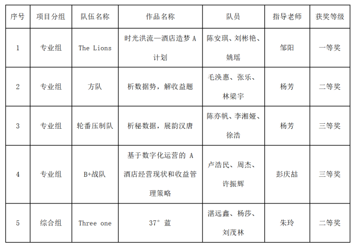 第三届湖南省酒店管理商业策划创意大赛获奖名单