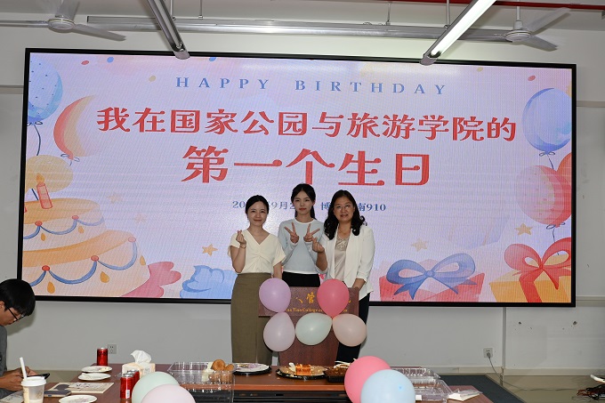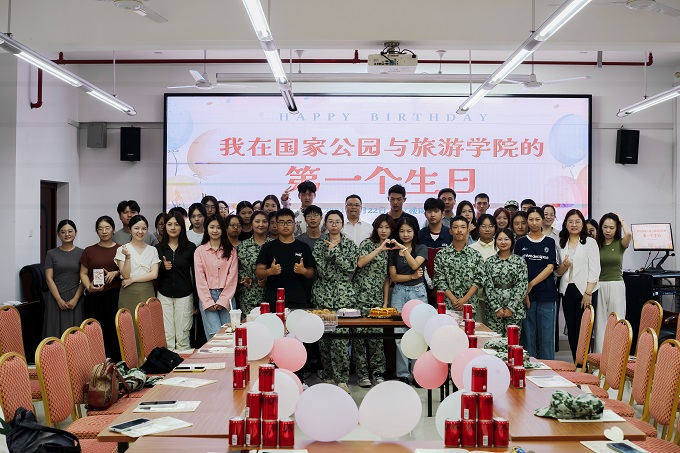 9月22日下午,我院在博文楼南910举办“我在国家公园与旅游学院的第一个生日”——2024级新生集体生日会,为九月生日的32名新生庆祝生日。学院党委书记洪梅,副院长(主持工作)罗芬,旅游管理系主任吴江洲,2024级班主任杨鹛、肖英、张双全、陈黎、周婷、邵海琴、王俊以及32名新生共同参加活动。学院党委副书记张卓主持生日宴会。