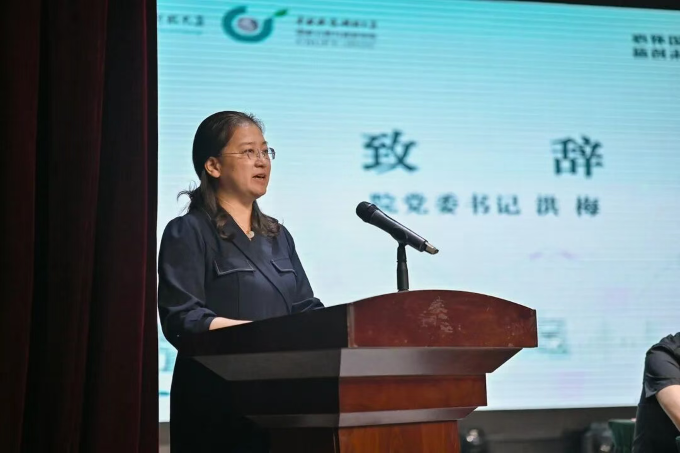 随后,学院党委书记洪梅致辞,向25级新生表示热烈欢迎,她真切希望大家将个人成长融入国家战略,在学院的支持下绽放光彩。