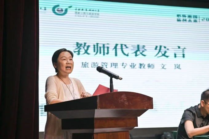 其中,旅游管理专业教师文岚作为教师代表发言,分享了专业学习的方法与心得,同学们表示受益匪浅;