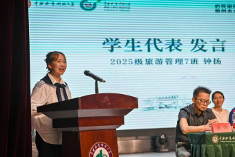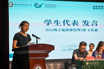 2022级土地资源管理1班王佳惠、2025级旅游管理7班钟扬作为学生代表发言。